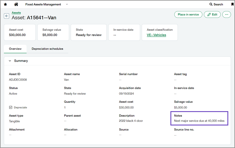 A new Notes field on assets allows you to capture additional details.