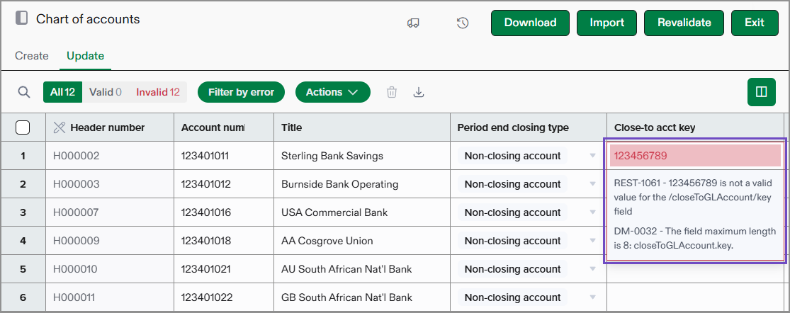 Real time error handling: Errors are displayed on the page, at the field level, and easy to understand and correct before finalizing your import.